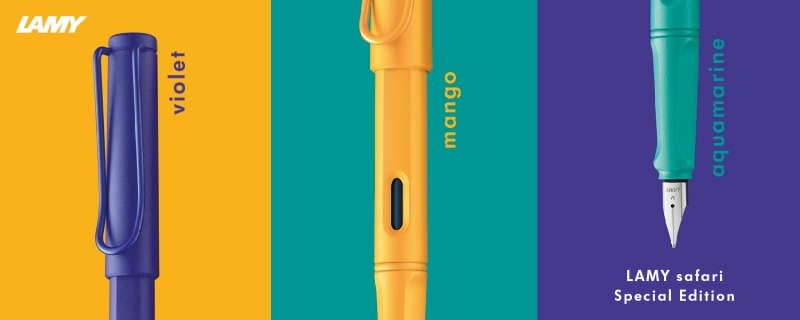 ¿Qué trae tanta alegría como una bolsa llena de dulces coloridos, y sin el azúcar azotado? La nueva edición especial de dulces de safari LAMY. El trío fresco, compuesto de violeta, aguamarina y mango, recuerda al arte pop, sorbete de frutas y glaseado de azúcar.